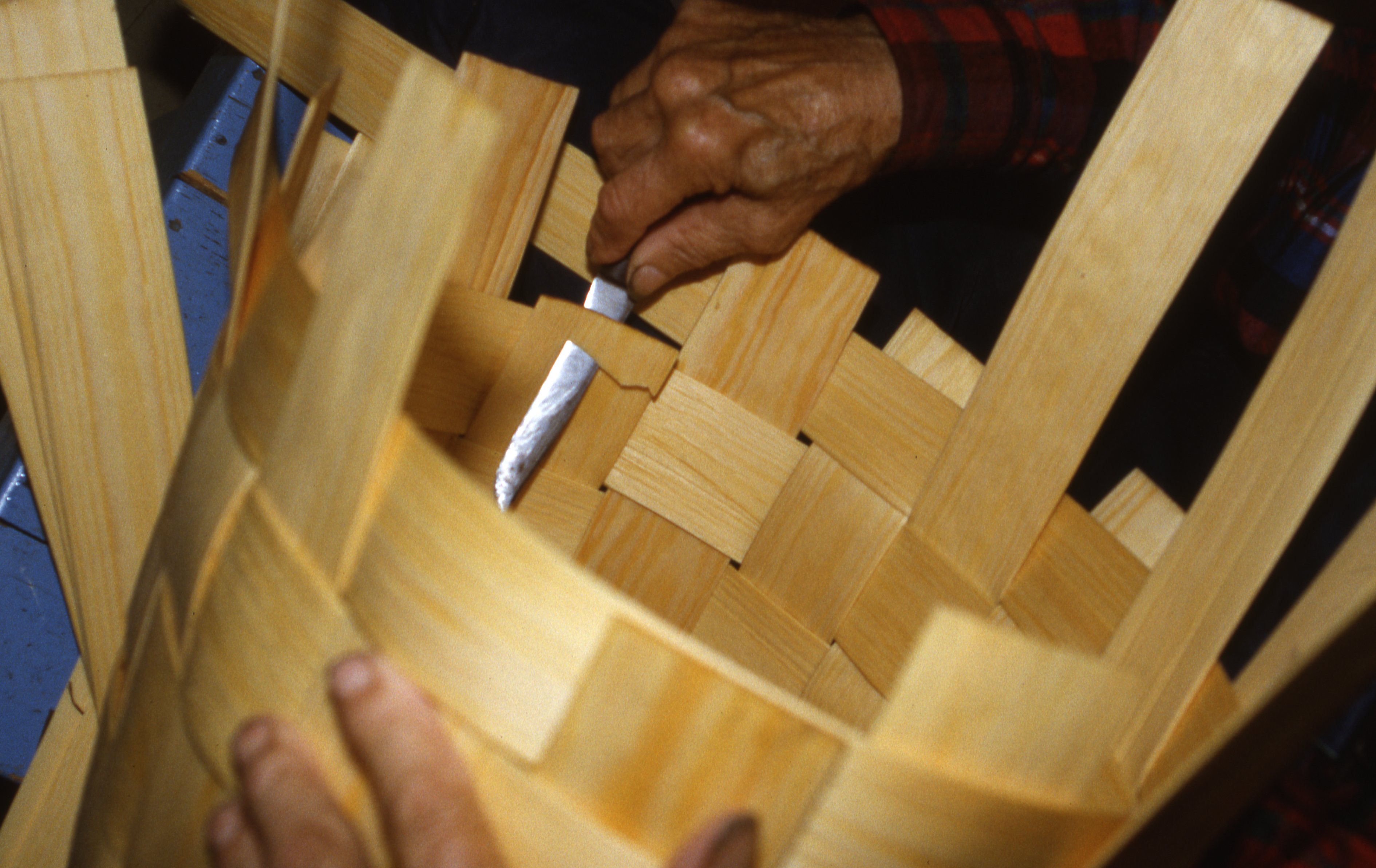Formålet med prosjektet var å se på teknikken med å rive spon. Det kreves helt spesiell materialkvalitet og det er spørsmål om nyanser i materialoppfatning som ellers er tapt. Etter mye leting har vi fått en viss oppfatning om hvordan de gode sponkassetrea ser ut og hvordan emnene skal tas ut av stamma. Det ble laget flere sponkasser.